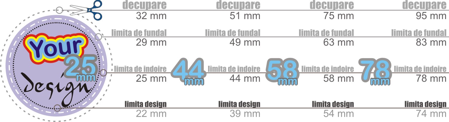 1. Design si dimensiuni de taiere pentru insigne rotunde.